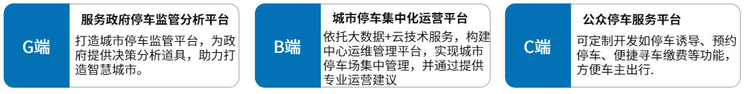路内停车解决方案基于不同城市的不同需求,以地磁、视频桩、低位视频、中位视频、高位视频等多种硬件方案为一体的路内停车解决方案,可根据实际情况使用最优方案。